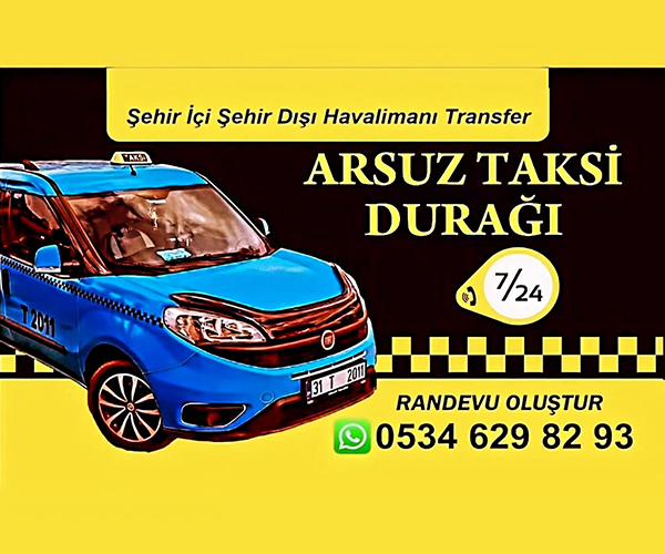 Güvenilir, hızlı ve kaliteli ulaşımın adresi olarak, Arsuz Merkez ve çevresindeki tüm taksi ihtiyaçlarınızda sizlere bir telefon kadar yakınız. Her yolculukta güler yüzlü hizmet ve güvenli ulaşım sağlamak için buradayız.